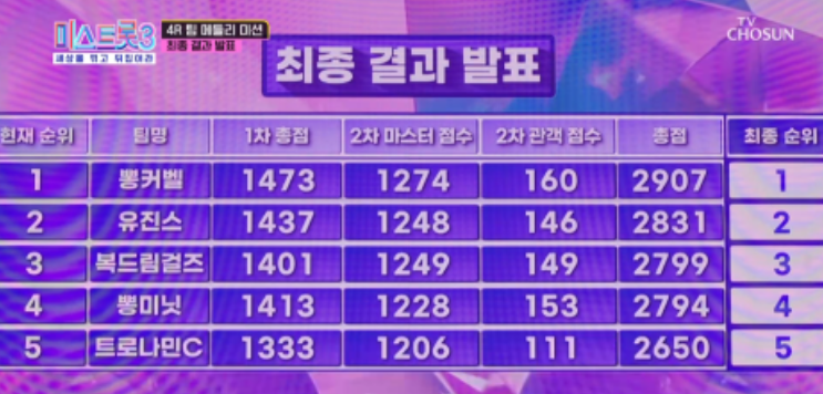 - 4위는 총점 2794점을 기록한 뽕미닛