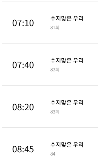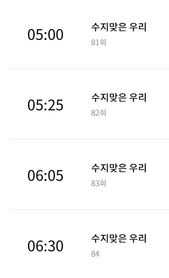 7월 20일 토요일을 기준으로 5시부터 7시까지 81회부터 84회까지 연속 재방송해주고 있습니다.