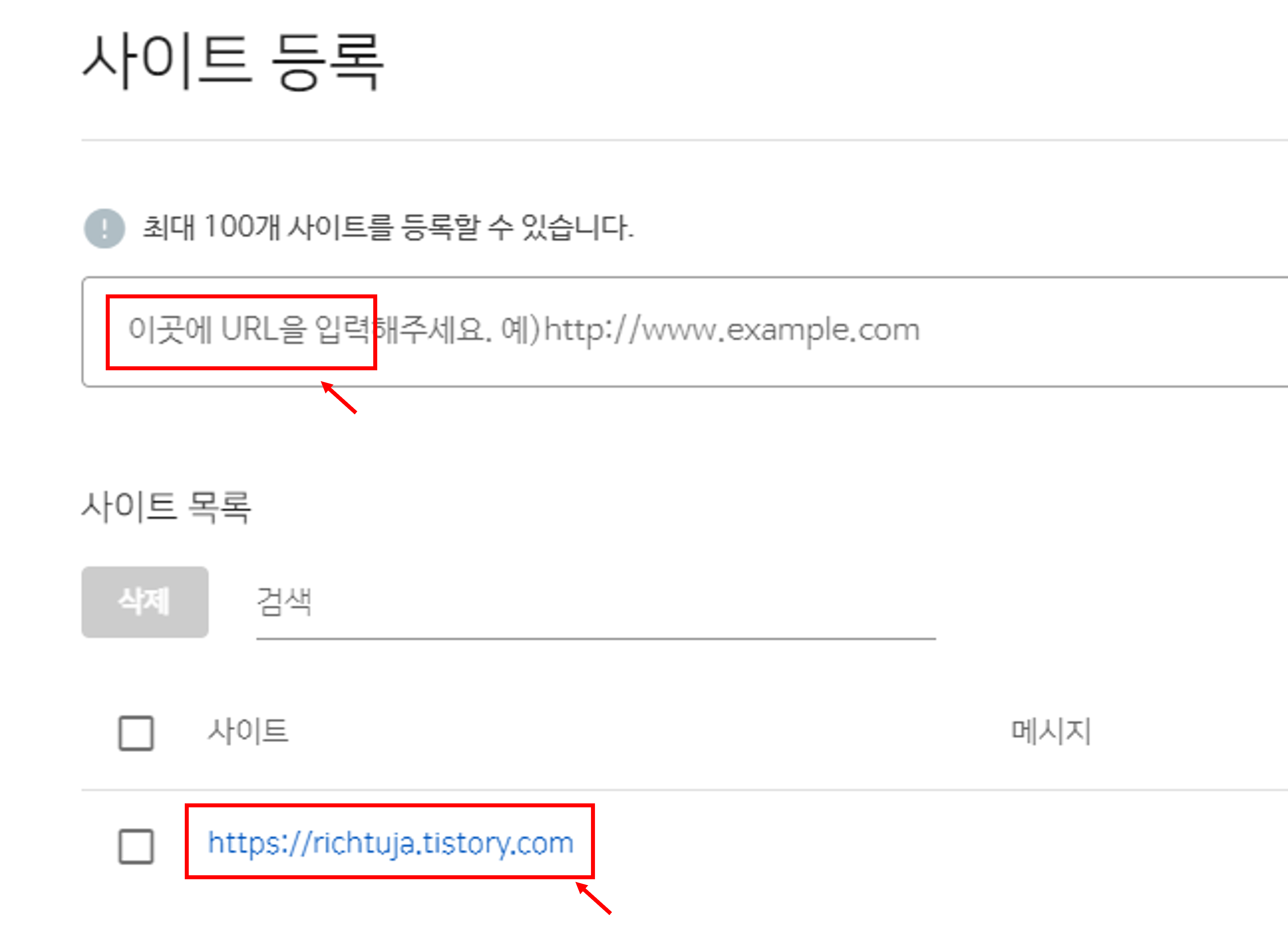 2) 티스토리 사이트 등록 후 사이트 클릭