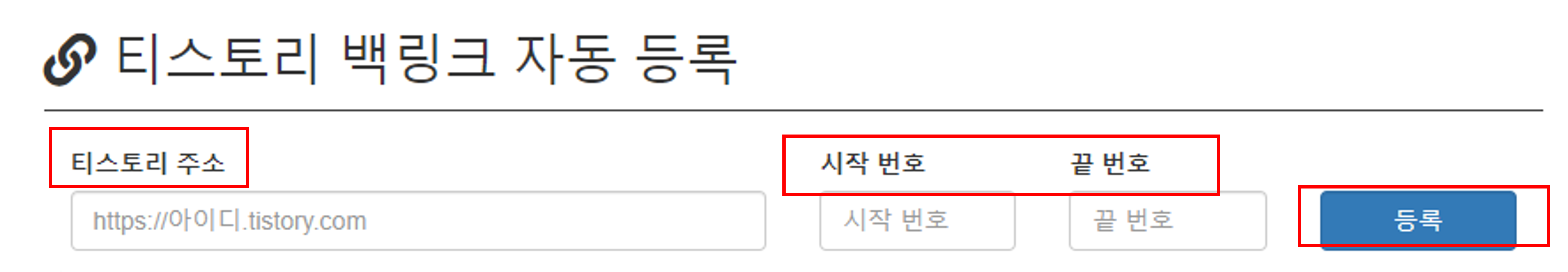 1) 사이트 방문 후 '티스토리 백링크 등록' 클릭