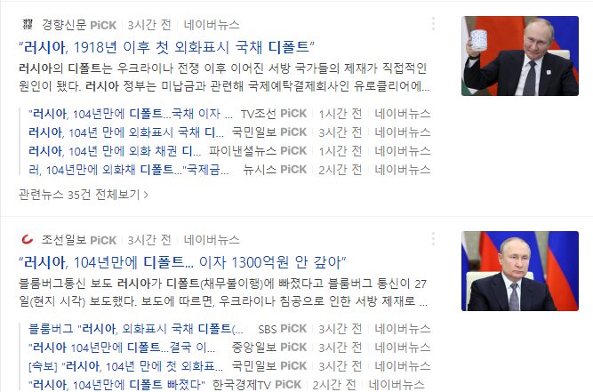 러시아의 디폴트는 우크라이나와의 전쟁 이후 서방 국가들의 제재가 계속되며 벌어졌다.