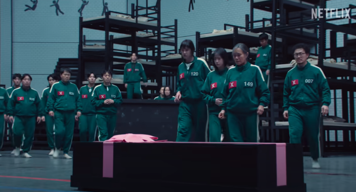 게임 요원들은 관을 들고 OX 표식을 지났는데, 이 OX 표식은 지난 시즌에서 게임을 계속할지 그만할지 투표하던 표식입니다. 원래 황동혁 감독은 오징어 게임을 통해 선거 제도의 허점이 많다는 것을 보여주고 싶었다고 하는데, 다수결의 결정이 항상 맞지는 않다는 것을 지적하고 싶었다고 하죠. 시즌 3 예고편에서도 이 장면을 중요하게 비추는 것을 보면 앞으로도 파란색과 빨간색의 대비는 계속될 것이고 시즌 3에서는 결국 참가자들의 운명을 결정짓는 색깔인 것이죠.