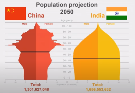 위 그림은 2050년의 중국과 인도의 예상인구 통계이다.