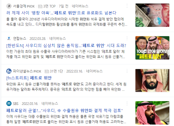 중국, 러시아, 인도, 사우디아라비아 등이 미국에 맞서려고 한다는 기사가 많다.